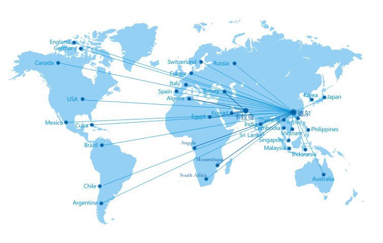 全世界各個國家和地區(qū)。目前占有市場:中國、美國、東南亞、中東、北非、南美等。至2018年11月,我們的市場除了在中國銷售到25個省份之外,還進入了美國、印度尼西亞、馬來西亞、孟加拉國、斯里蘭卡、越南、巴基斯坦、卡塔爾、阿爾及利亞、安哥拉、莫桑比克、智利等12個國家。