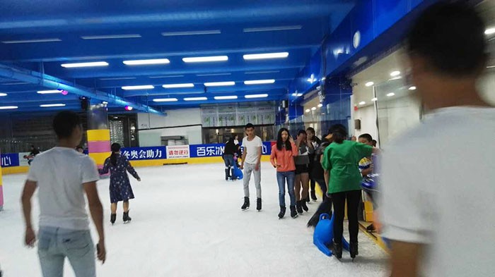 真冰場位于世紀(jì)華聯(lián)地下一層超市旁邊,地面上是鯨魚廣場,頗有特色。眾多高等學(xué)府集中此地,這些校園里的莘莘學(xué)子,許多年后,一定有眾多鯨魚級人物浮現(xiàn)。