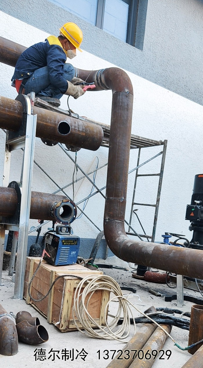 在下面的這張照片中,德爾制冷的工作人員的著裝,一眼就能看出北京3A冰上空間滑冰場是在特殊時期建設(shè)的。我們的工程施工人員正在進行管道焊接與施工。