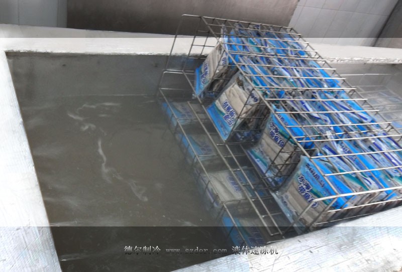 液體速凍機(jī),是速凍中比較常見的一種速凍方式。原理是速凍機(jī)將速凍槽內(nèi)的急凍液降溫到較低溫度,凍品包裝后浸入速凍槽內(nèi)的急凍液中,實(shí)現(xiàn)快速凍結(jié)。