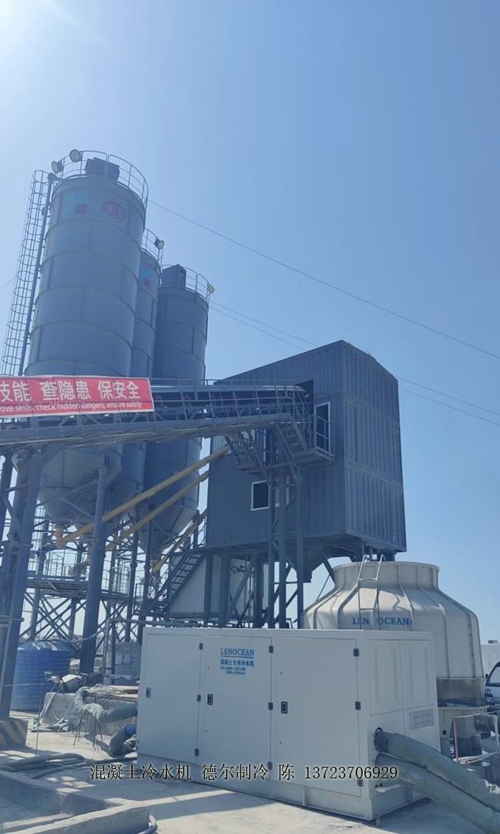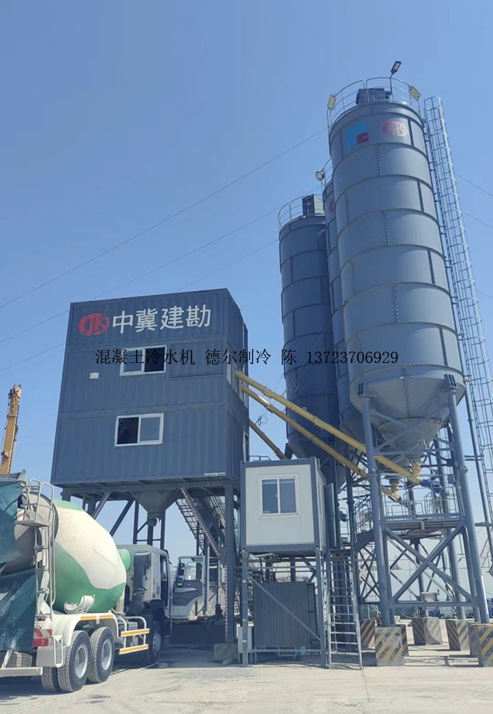 在中冀建勘混凝土攪拌站,混凝土冷水機(jī)為攪拌站提供低溫冷水,為混凝土降溫。